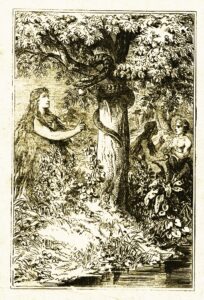 カール・ポエラート作、(1886年頃) 「イブは禁断の果実を食べ、リリスと話すアダム」