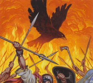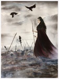 三女神モリグナはワタリカラスに姿を変えて、兵を挑発や威嚇し、戦況を楽しみます。