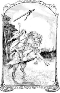 ドーラ・カーティス作『エクスカリバーを持つモルガン・ル・フェイ』(1905年)