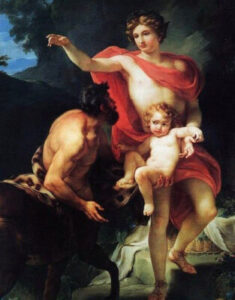 ゼウスの子・アポロンから音楽、医学、予言の技、アルテミスから狩猟を学んだ賢者。