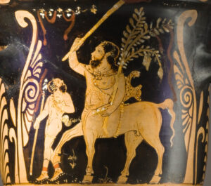 アポロンから音楽、医学、予言の技、アルテミスから狩猟を学び、英雄ヘラクレスや最強の戦士アキレウスに武術を、医術の神アスクレピオスには医術を授けたという偉大なる賢者。