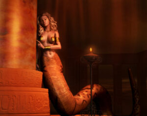 エキドナ自身は上半身が煌めくような美女で下半身が蛇という姿。