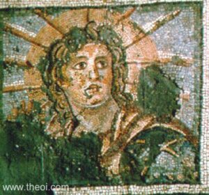 ヒュペリオン「上にあるもの」、パエトーン「輝くもの」の称号を持つ、太陽の光輪を冠した美しい男神。