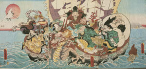 近世にはこの七福神の大黒様は、夷と並んで七福神の福徳の来訪をあらわすめでたい神の代表として民謡や芸能に登場。